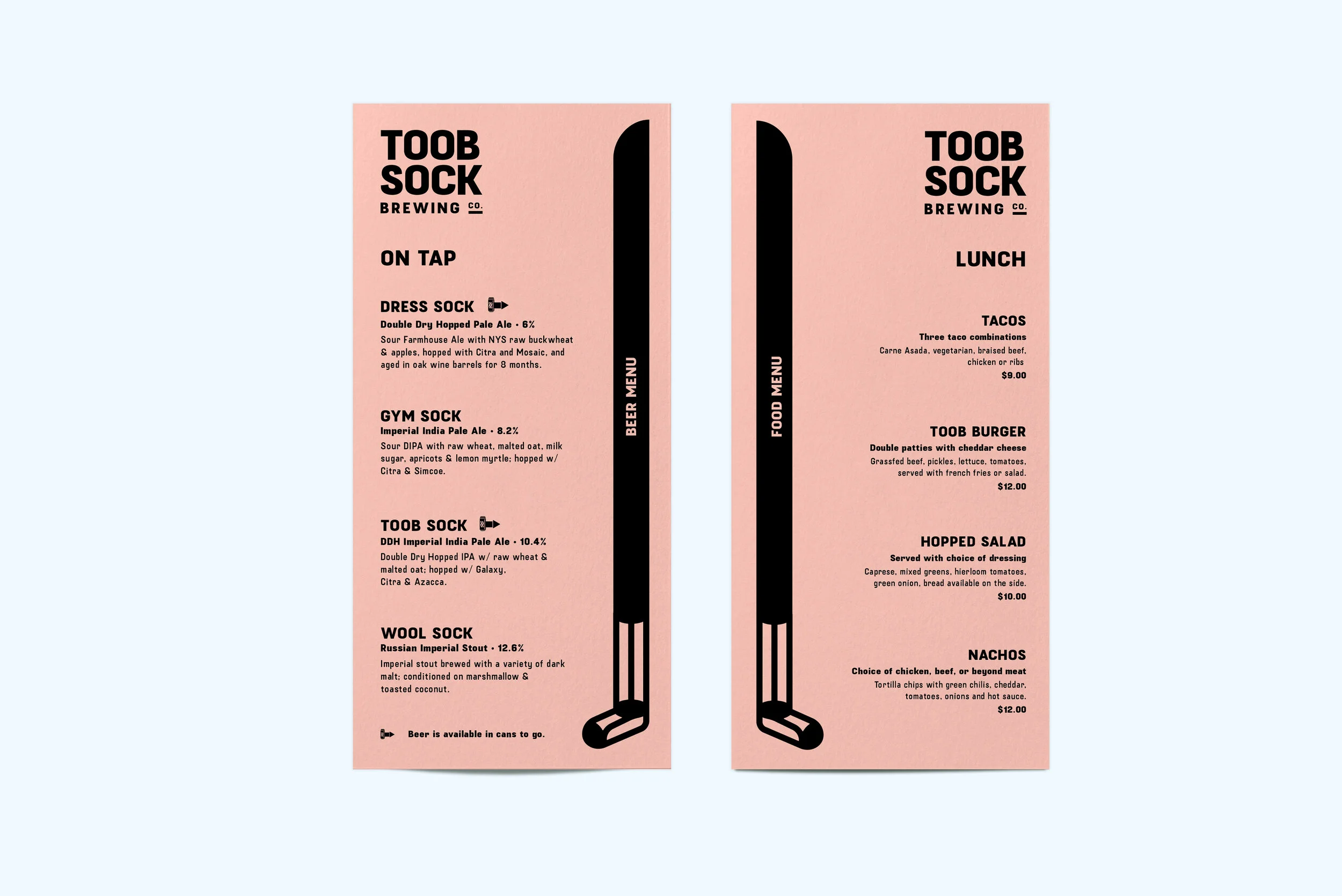 “Toob Sock Brewing Co.” is the materialization of my friend/client’s homebrewing-turned-brewery expedition. The name Toob Sock is derivative of a beer brewing apparatus nicknamed the “Hop Sock”, a mesh sock which separates the hops from the worth. I was approached with the task of creating a fun and excitable identity to separate TOOB SOCK from the crowded market of craft beer. What came out of this brand exploration is a fun, goofy, yet unique identity with the ability to expand the visual language as the brewery grows.